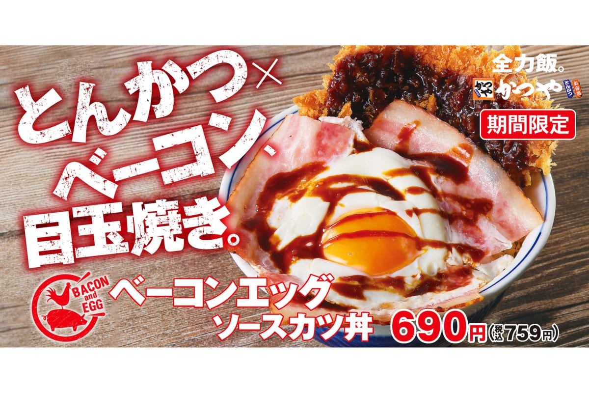 かつやが7月22日から新メニュー『ベーコンエッグソースカツ』を発売。これは朝食にピッタリかも…。